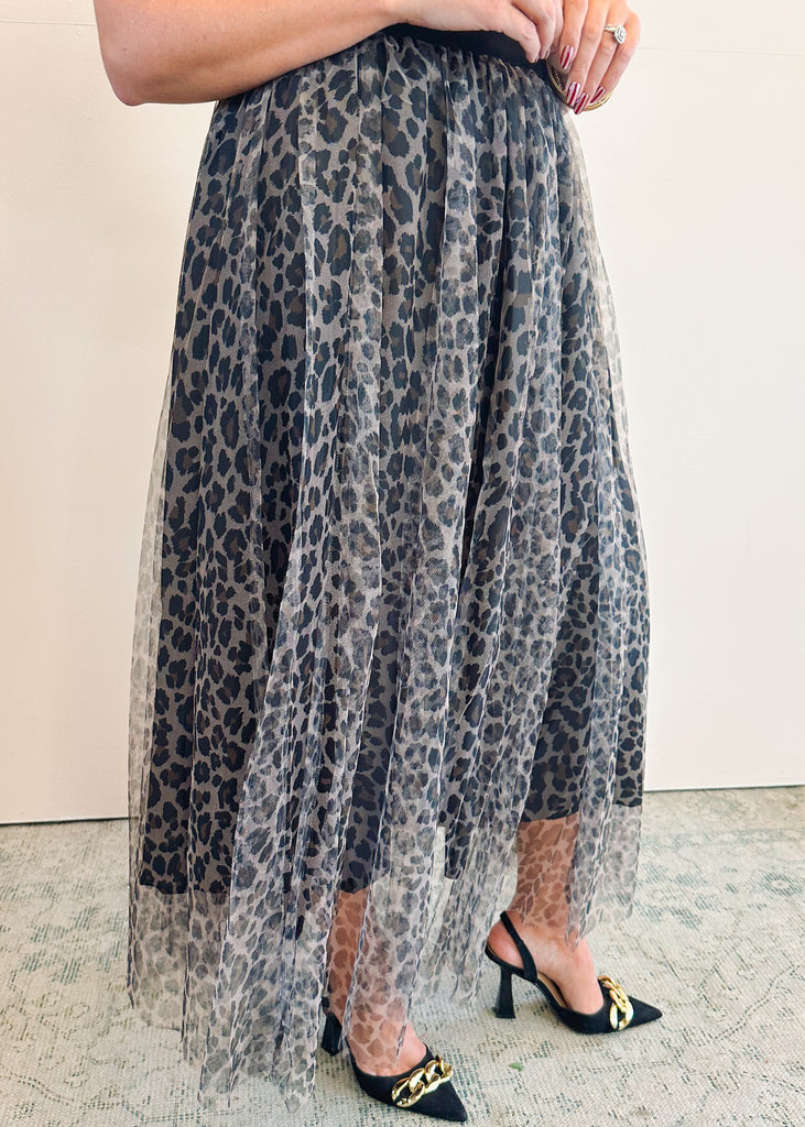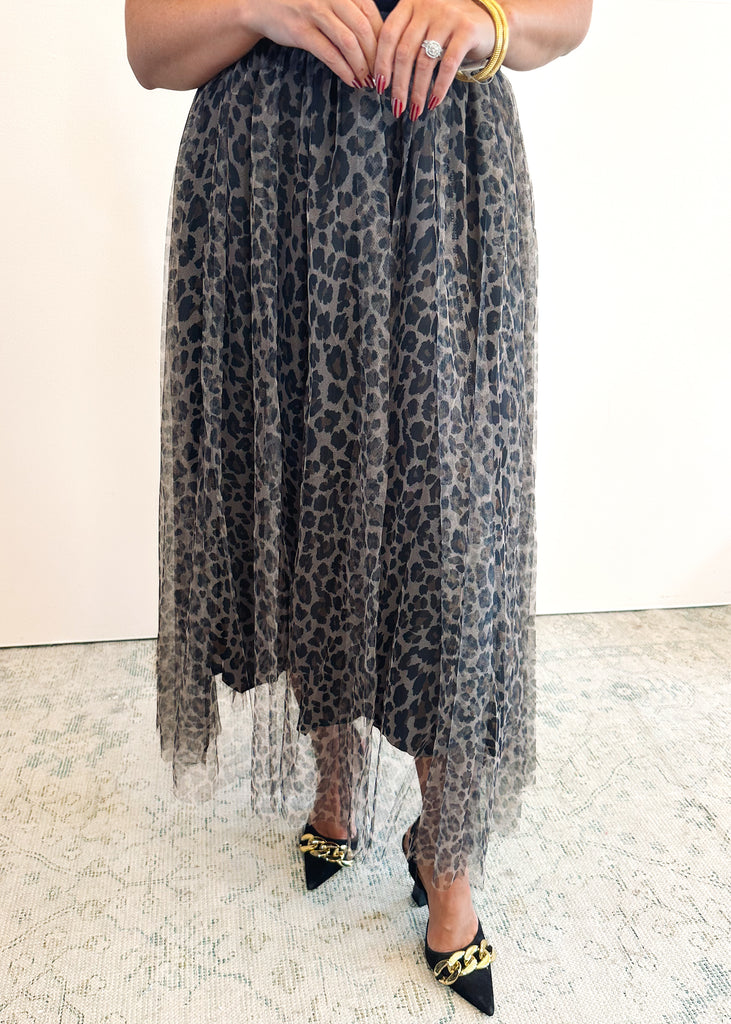 Rock a Fun look with this leopard tulle skirt! Featuring a fun animal print design in rich brown tones, this flared skirt offers a playful twist on classic style. The comfortable elastic waistband and hem ensure an easy fit, while the straight hem keeps things polished. Made from soft polyester with a tulle overlay, it hits at approximately 90cm in length—perfect for twirling.