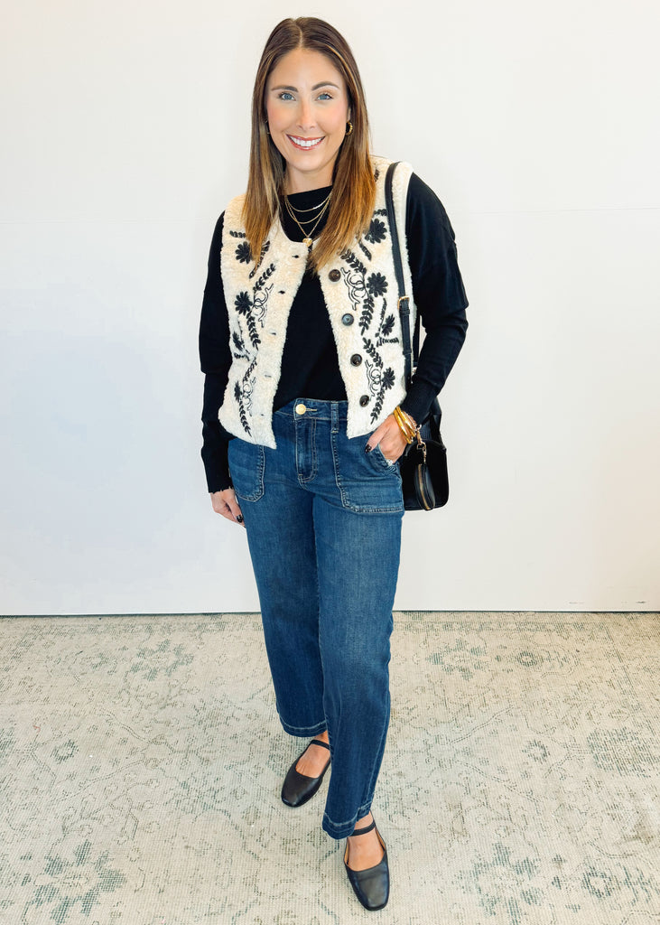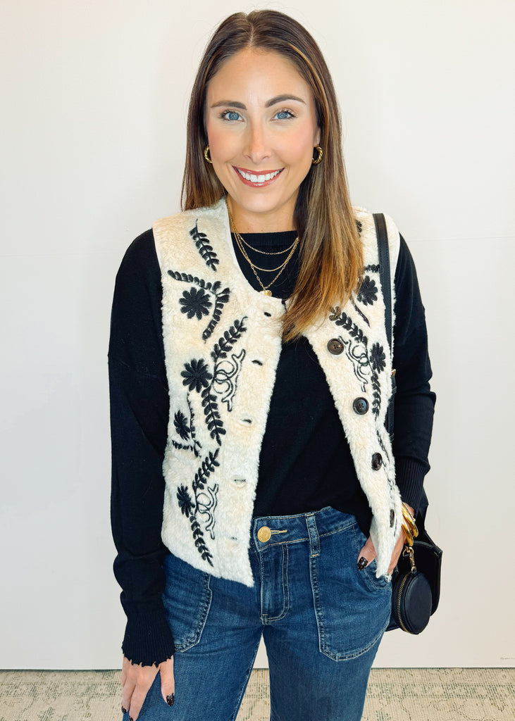 Adelaide sleeveless embroidery vest seamlessly blends elegance and charm, offering a fresh take on a timeless piece.