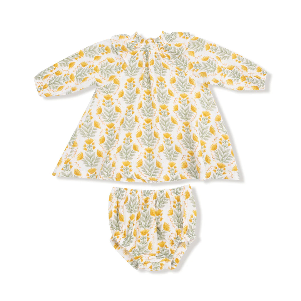 Winter Dandelions Smocked Neck Ruffle Dress & Diaper Cover