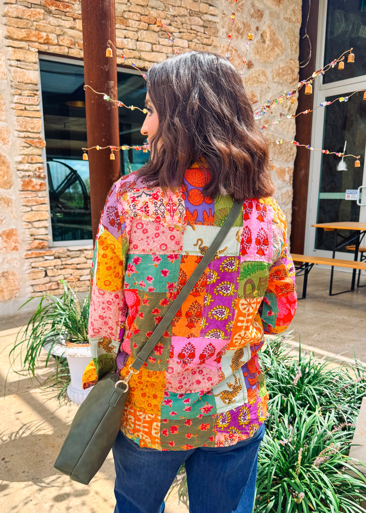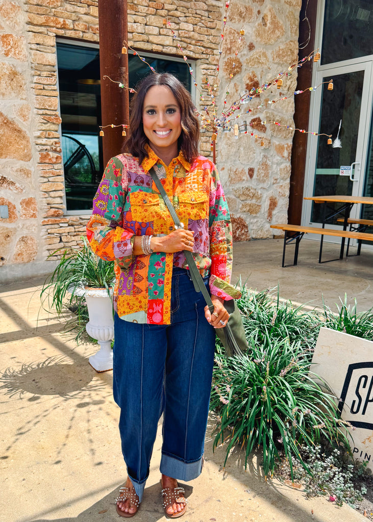 The Delilah Patchwork Camp Shirt is your new go-to for playful, comfortable style. Featuring long sleeves, a crisp collar, and fully functional buttons down the front, it’s as practical as it is fun. Two chest pockets add a handy touch for keeping small essentials close.