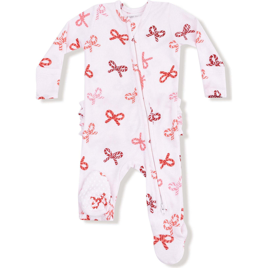 Candy Cane Bows Ruffle Back Footie Sleeper – Farmhouse Market TX