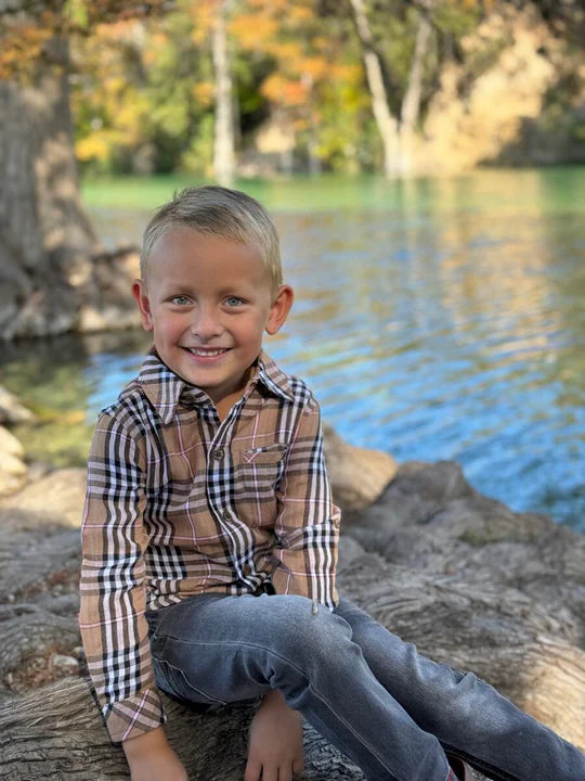 The Atwood Plaid Woven Shirt in brown, black, and red is a fun and stylish pick for boys who love a little flair. Soft and durable, it’s perfect for playful days at school or weekend adventures. With vibrant colors and classic plaid, this shirt adds a cool, casual vibe to any outfit while keeping comfort front and center.