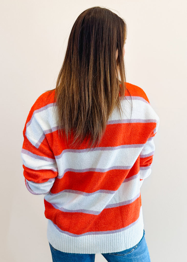 Wrap yourself in cozy charm with the Sylas Striped Sweater. Its soft fabric and warm feel make it perfect for chilly days, while the playful stripes add a fun touch to your outfit. Comfortable enough for all-day wear, this sweater is your new go-to for staying snug and stylish.