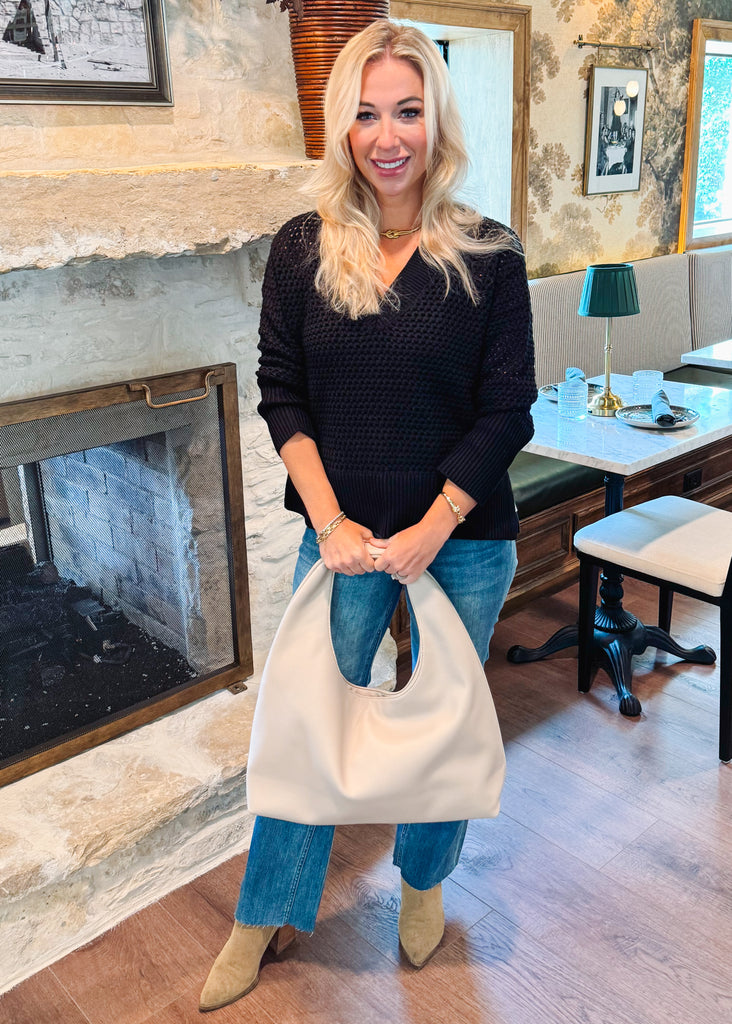 Get ready to get cozy and stylish with the Cameron Sweater! Made from soft crochet material, this sweater features a v-neck design for ultimate comfort and fashion. Perfect for chilly days and lounging in style.