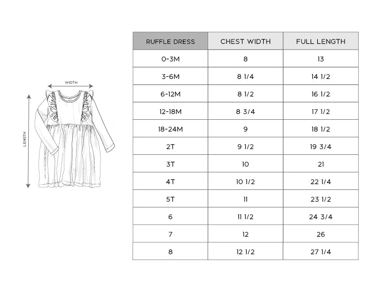 Add a touch of charm to your girl's wardrobe with our Long Sleeve Ruffle Dress. Featuring soft bamboo viscose and adorable ruffle details, this dress is perfect for parties, school, or casual outings.
