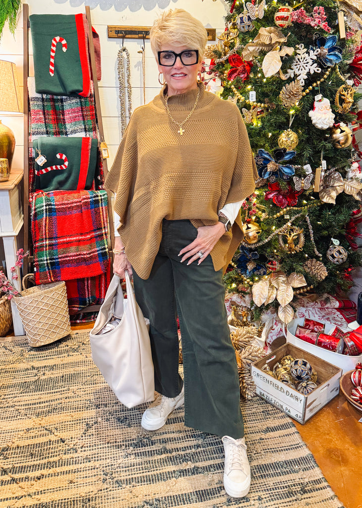 Wrap yourself in cozy elegance with this camel knitted poncho by Molly Bracken. Perfect for layering over your favorite fall outfits, this versatile piece brings warmth and effortless style to any occasion. The soft, neutral tone pairs beautifully with everything in your wardrobe, while the relaxed silhouette keeps you comfortable all day long.