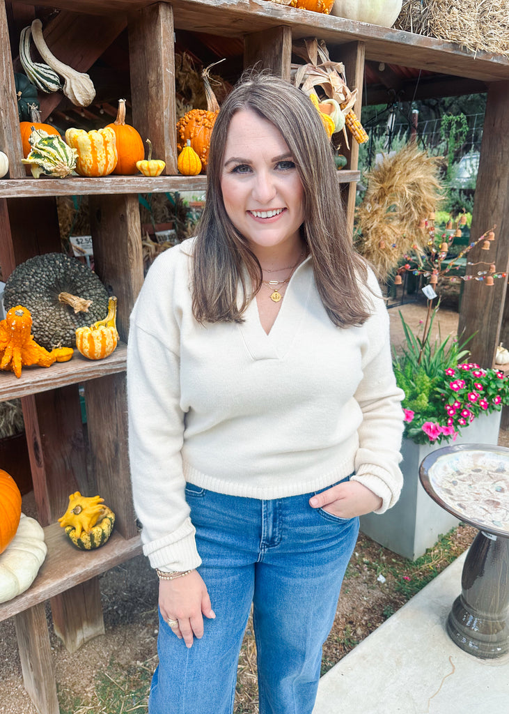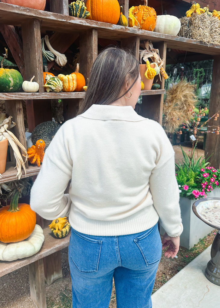 Stay cozy and chic in the Elisa Collared Sweater Polo in Off White. This soft, casual sweater blends comfort with effortless style, making it perfect for laid-back days or casual outings. Its playful design adds a fresh twist to your everyday wardrobe!