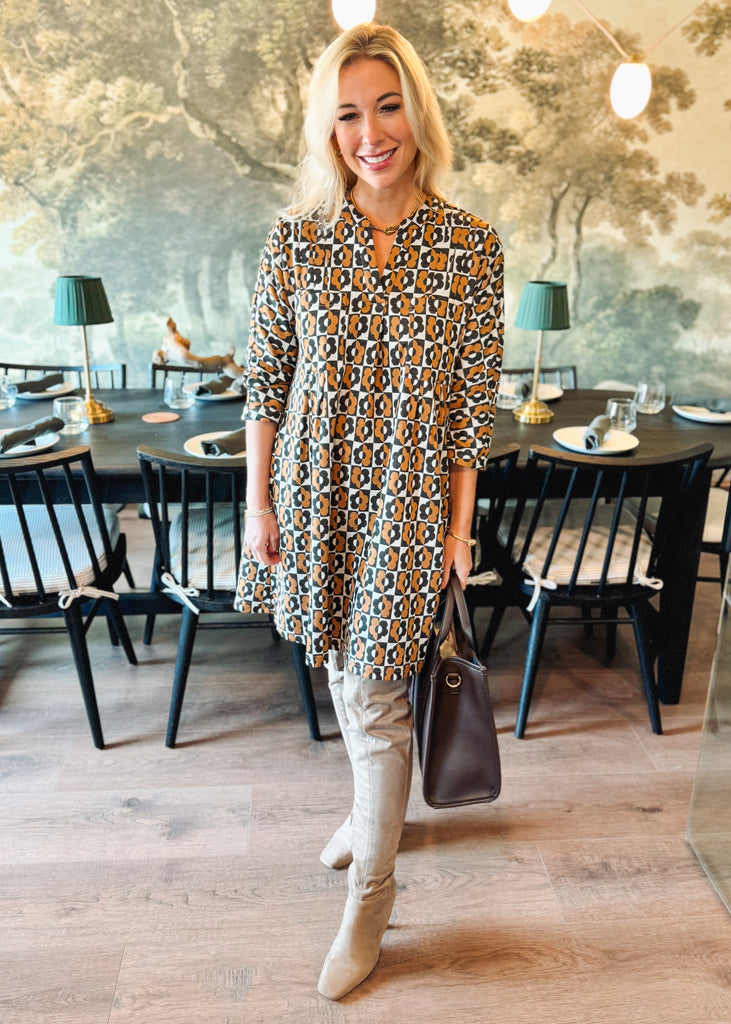 Step into cozy chic with the Flower Block Dress in Black! This long-sleeve, heavy-weight dress offers an oversized fit and a flirty V-neck that make comfort look effortless.